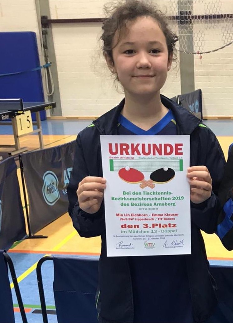Auch die Teilnahme an den Bezirksmeisterschaften war erfolgreich.Im Mädchen 13 Doppel belegte Mia-Lin Eichhorn mit Emma Kleuser einen hart erkämpften und wohlverdienten 3.Platz.